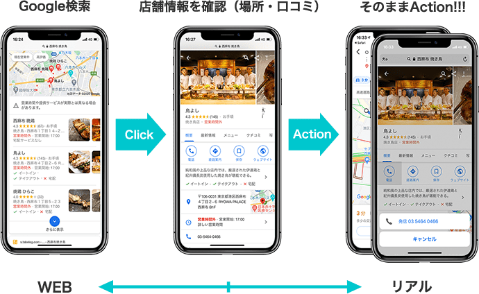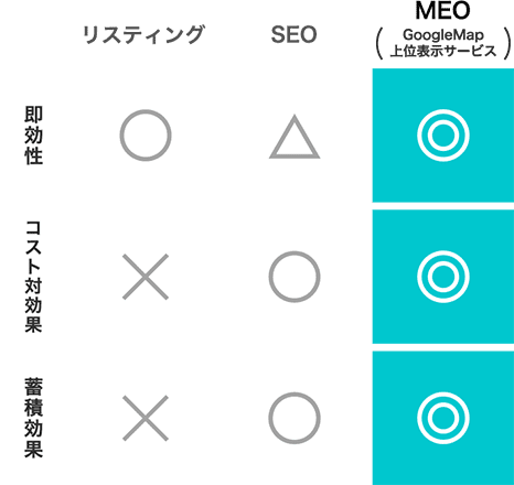 MEOとは、『Map Engine Optimization』の略称で、Googleマップでの検索(ローカル検索)にてクリニック情報やビジネス情報を検索ユーザーに見つけやすく施策をし、競合のクリニック情報より上位に表示されるよう対策をすることを指します。